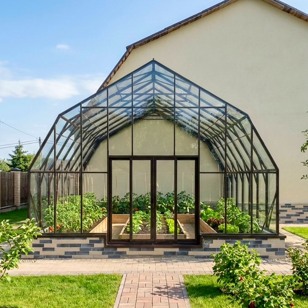 Эта модель воплощение классического стиля и высокого качества в одном решении. Характерный для английских оранжерей мансардный фасад с фигурным коньком и окрашенный алюминиевый профиль придают теплице облик настоящей викторианской оранжереи, которая станет архитектурным акцентом любого участка.