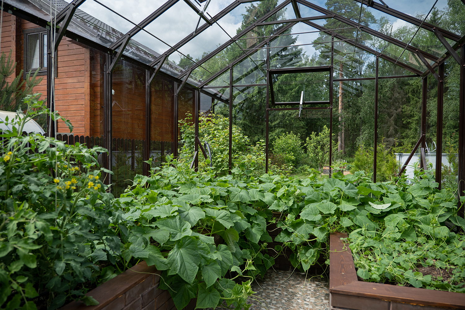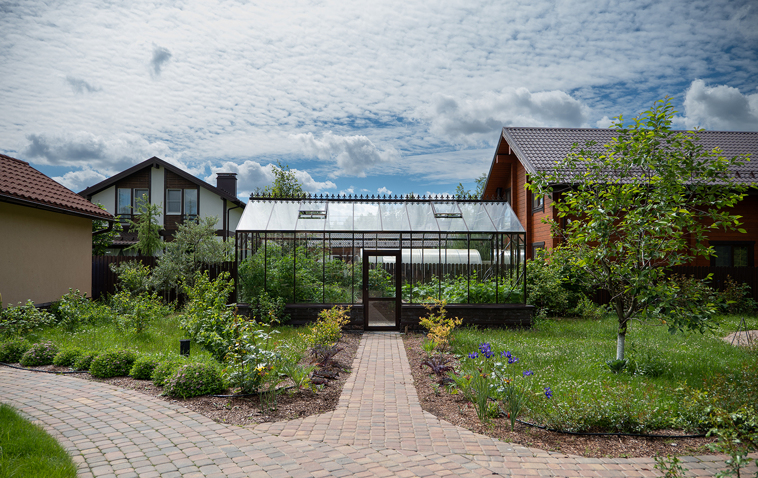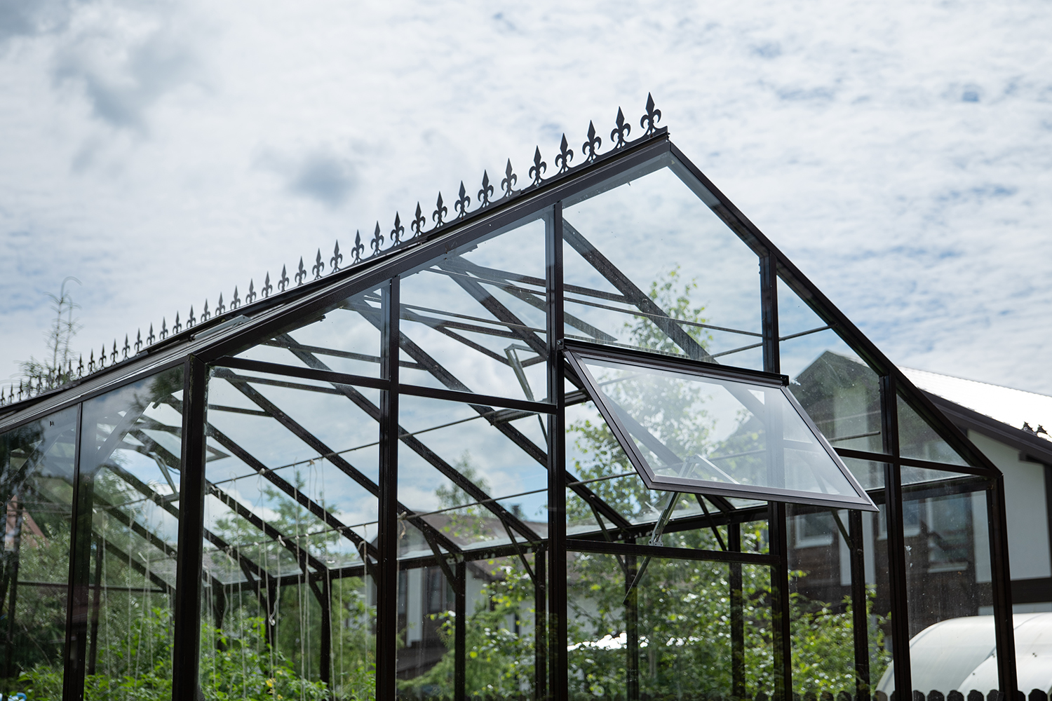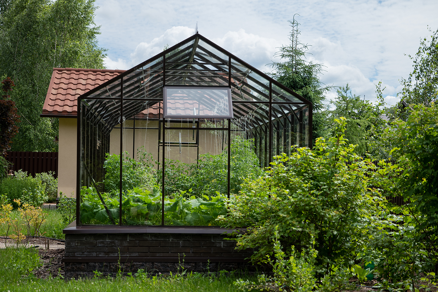 Довольно часто мы устанавливаем теплицы, у которых вход осуществляется не через торцевые двери, а через боковые. Такое расположение дверей подойдет в том случае, когда вход в теплицу с торца затруднен, например, забором, постройкой или особенностями ландшафтного дизайна!